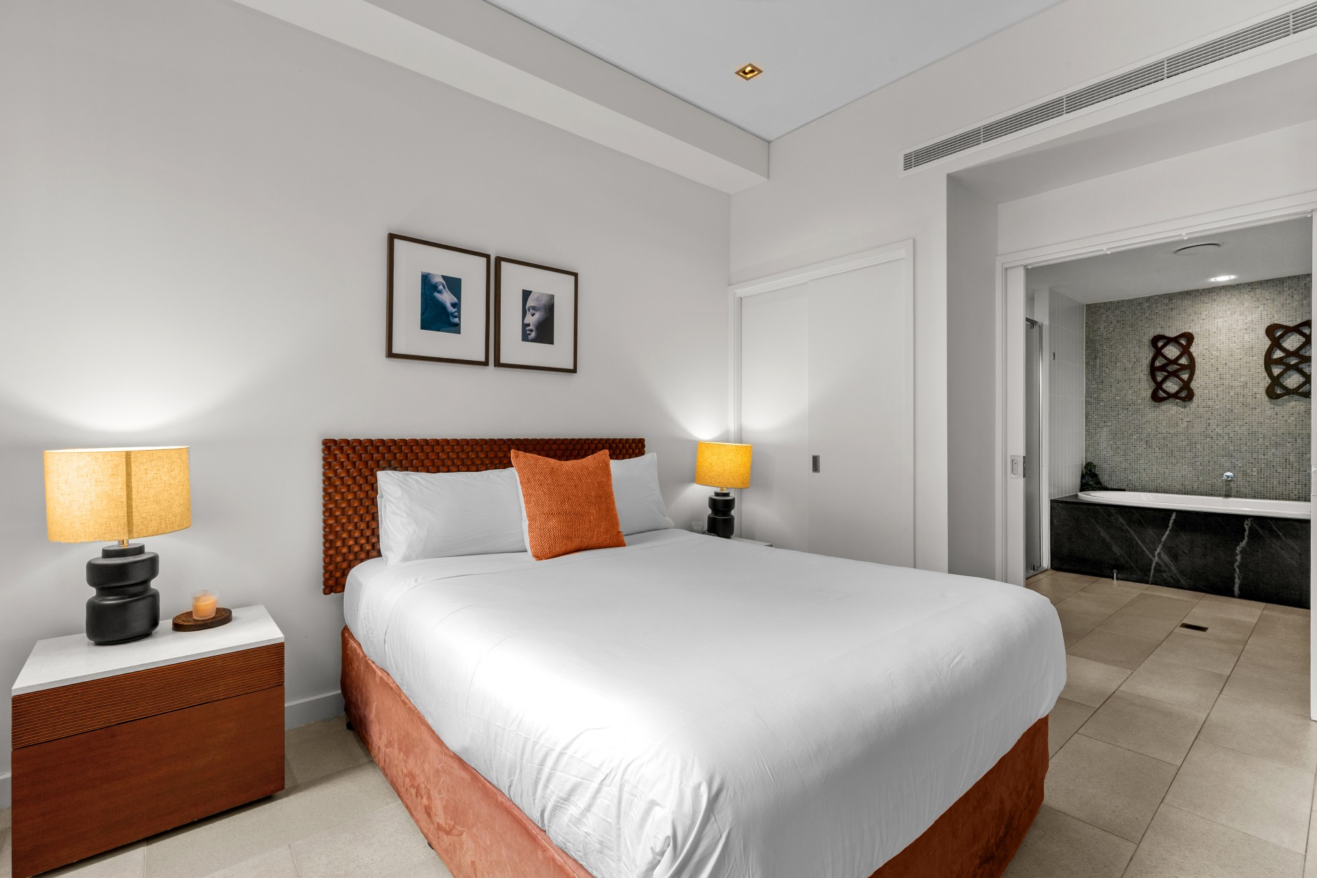 The master bedroom features its own spacious built-in wardrobe and an ensuite bathroom complete with a luxurious 2-person spa bath. The second bathroom offers a convenient shower.