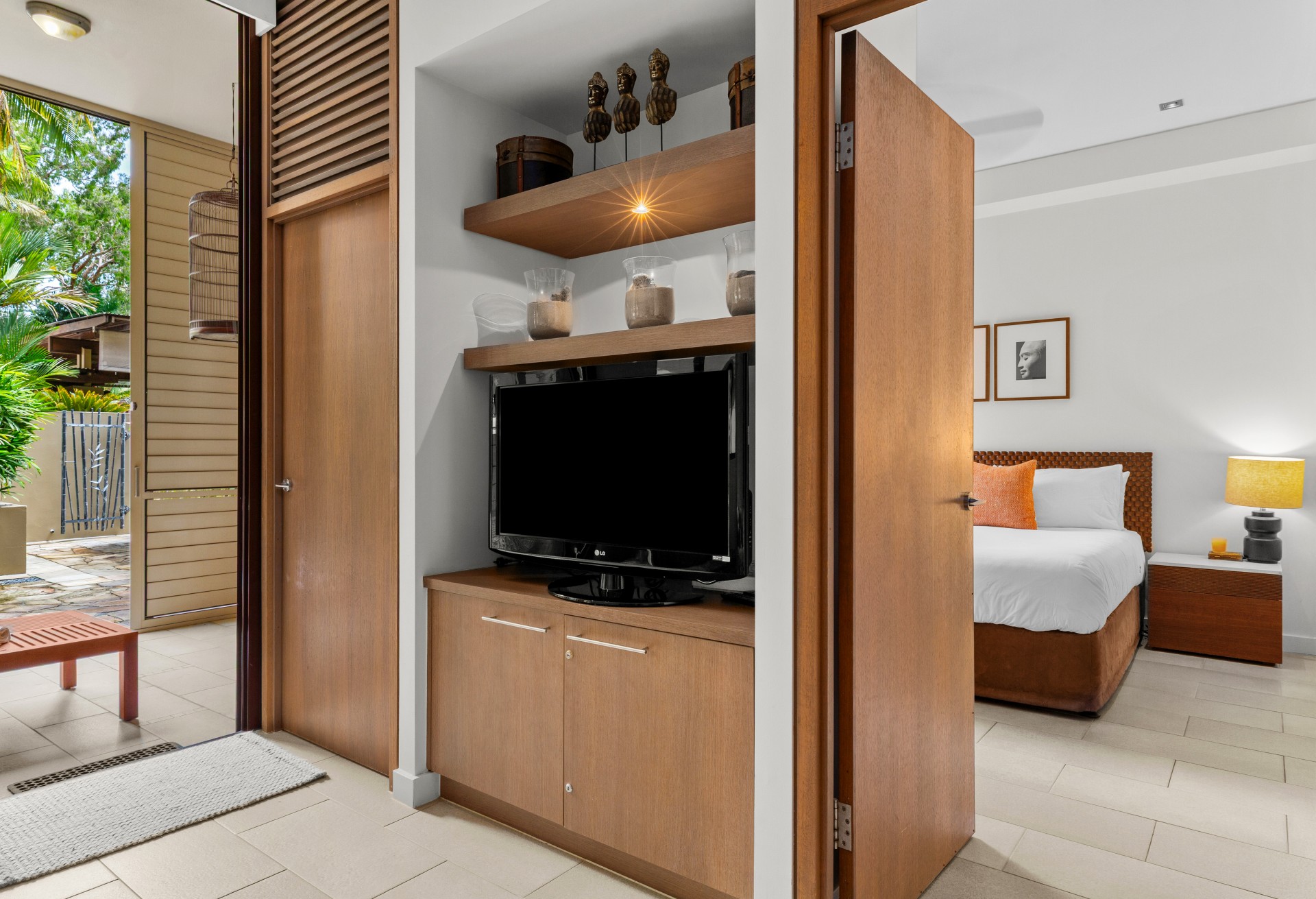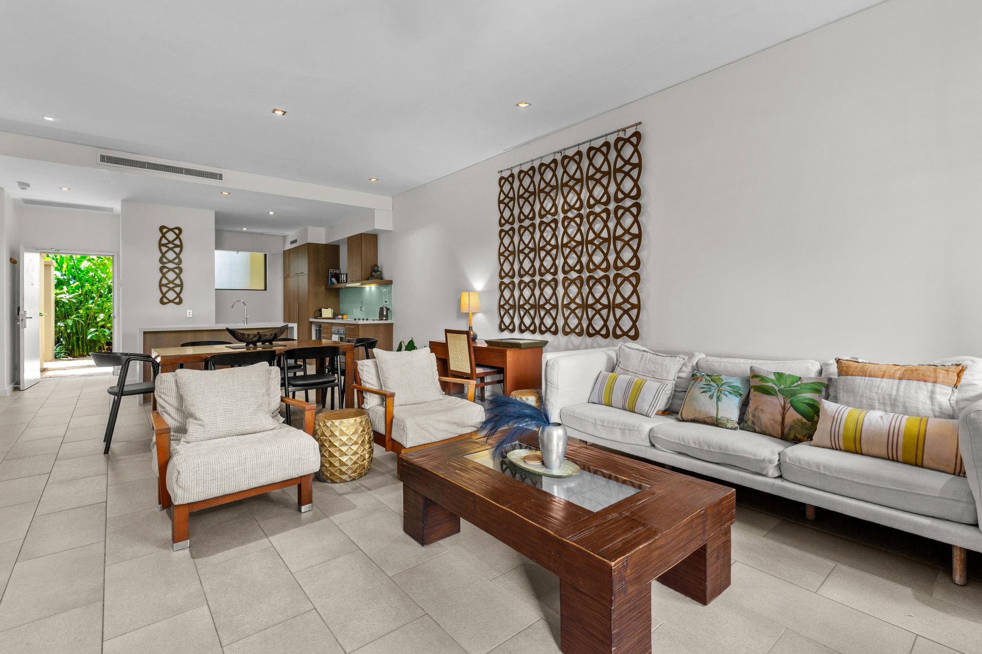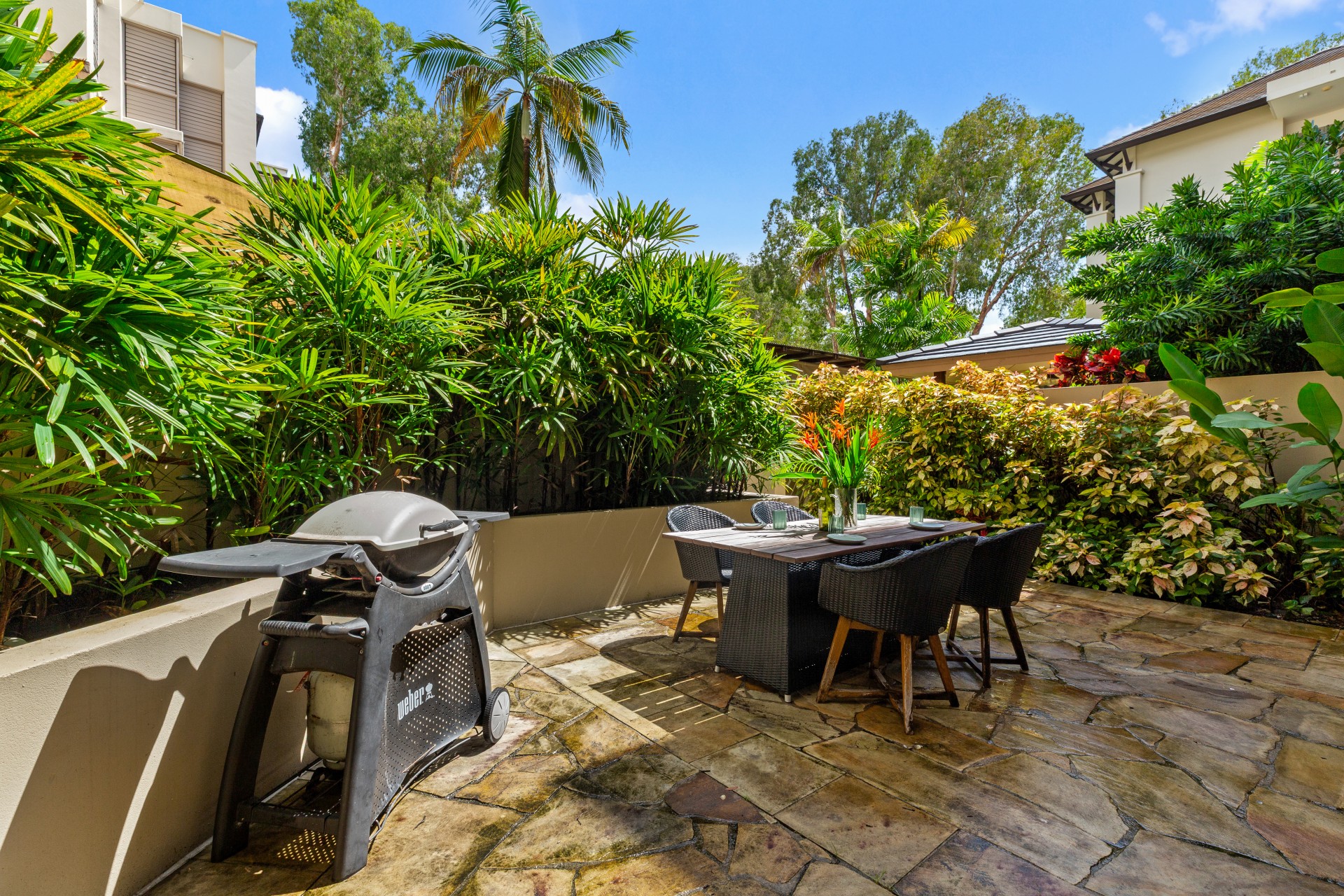 Situated within a renowned beachfront resort, Temple 121 offers a beachside retreat like no other. One of its most exceptional features is the north-facing courtyard, complete with outdoor dining and a BBQ, perfect for alfresco meals and evening gatherings. Beyond the resort's doorstep lies the vibrant main street of Palm Cove, just a leisurely 5-minute stroll away, filled with a diverse selection of restaurants and shops.